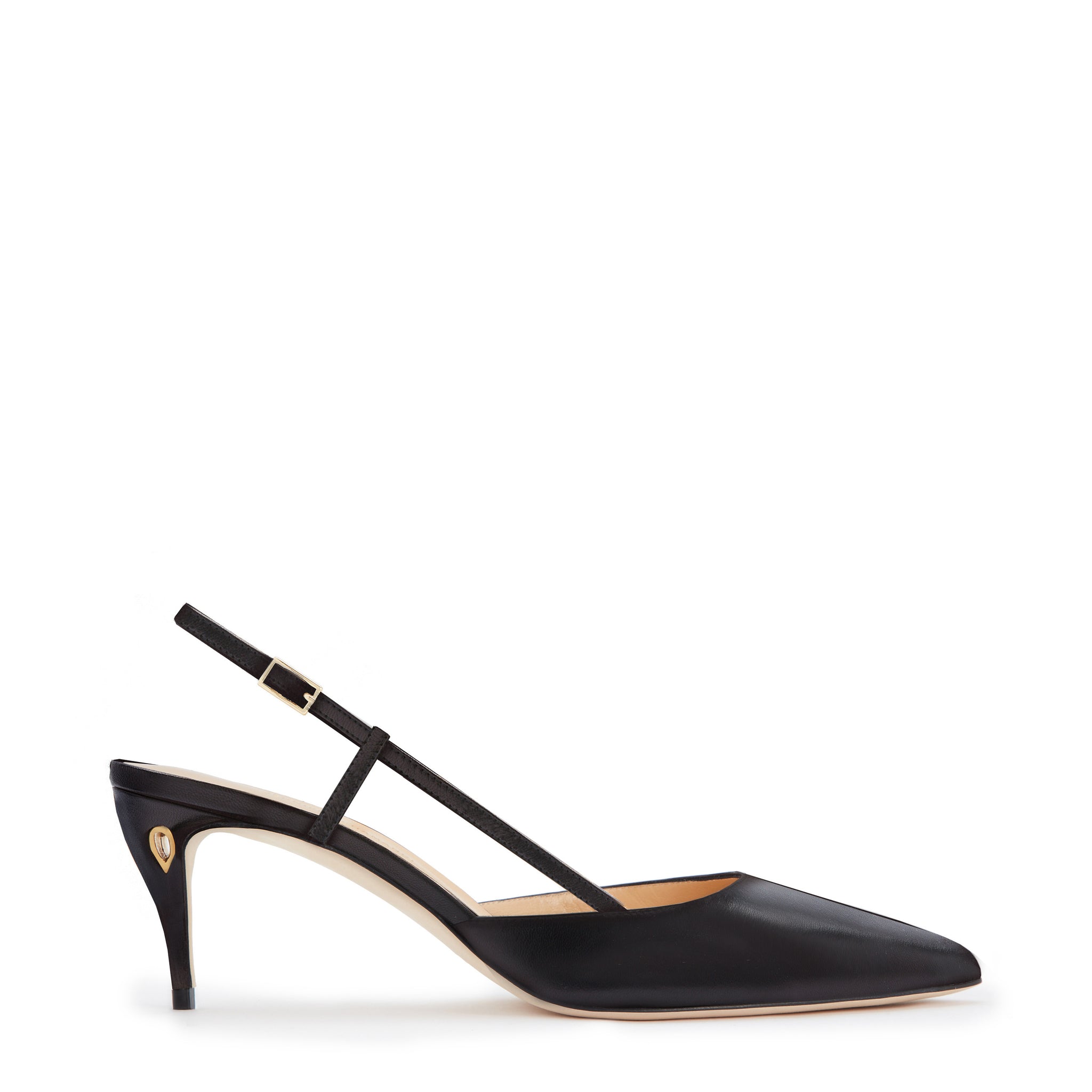 Redefining both simplicity and structure, the Mario 65 offers a blend of elegance and comfort. Handcrafted from black nappa leather with a 65mm kitten heel and slingback strap, you’ll be wearing them all day with ease.